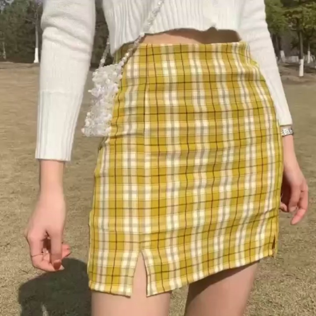 上新全清:¥6.8一件品牌ins超火BM风显瘦开叉西装面料格子裤裙,里衬下摆拼...