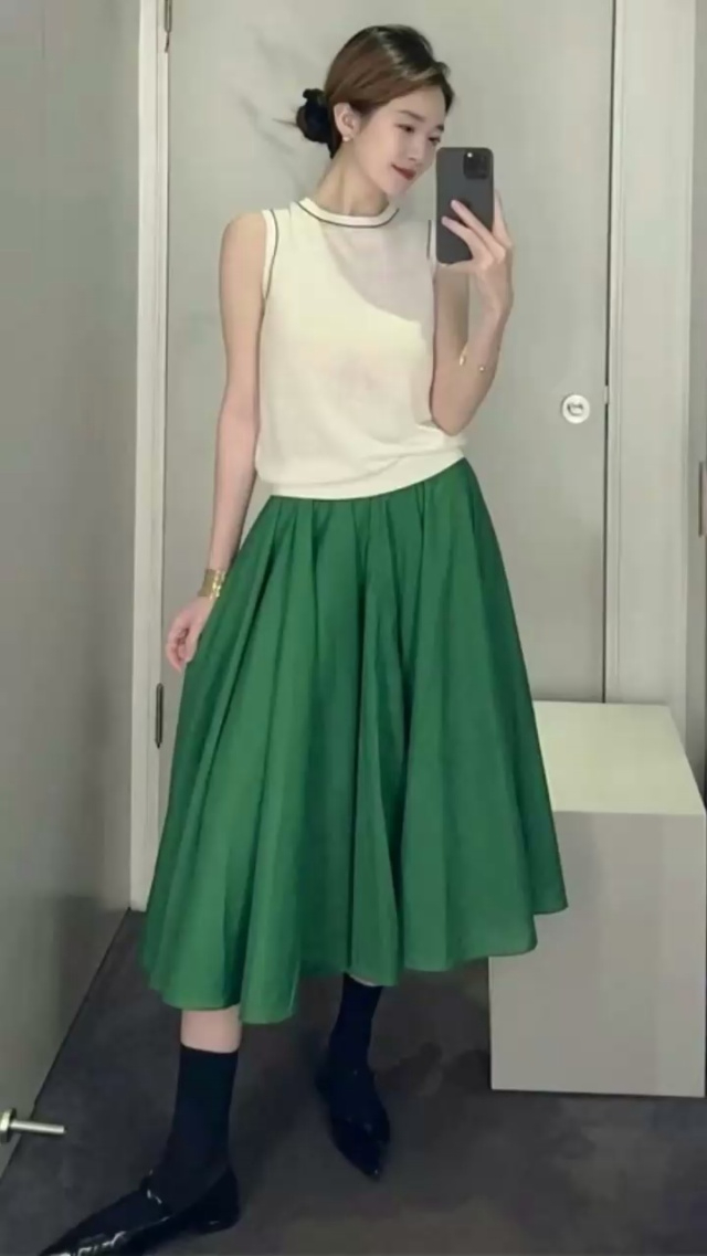 [爆竹][爆竹] 4.9清360件 纯色+印花百搭显瘦大百褶中长款半身裙,小整款,...