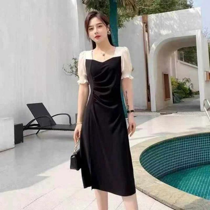 大码弹力设计感绑带T恤裙女夏季法式气质通勤显瘦小众收腰开叉连衣裙5000件...