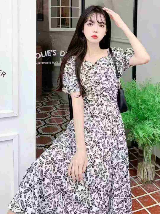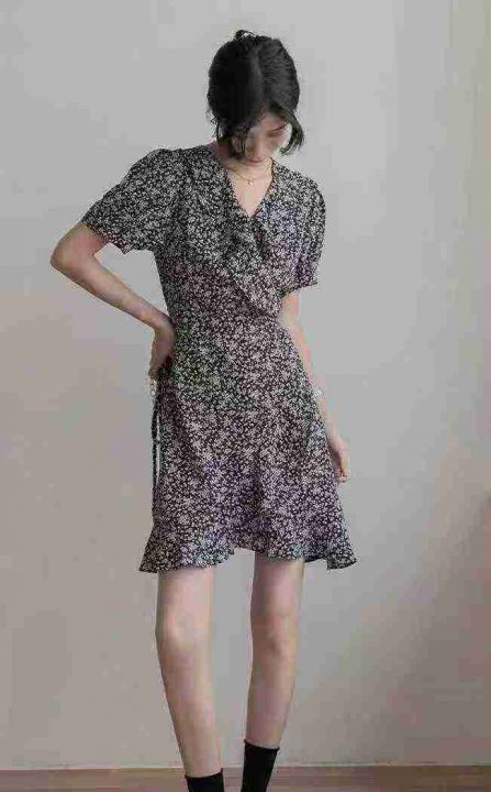 气质连衣裙女2025年新款夏季洋气碎花减龄时尚雪纺短款裙子300件,单款两色...
