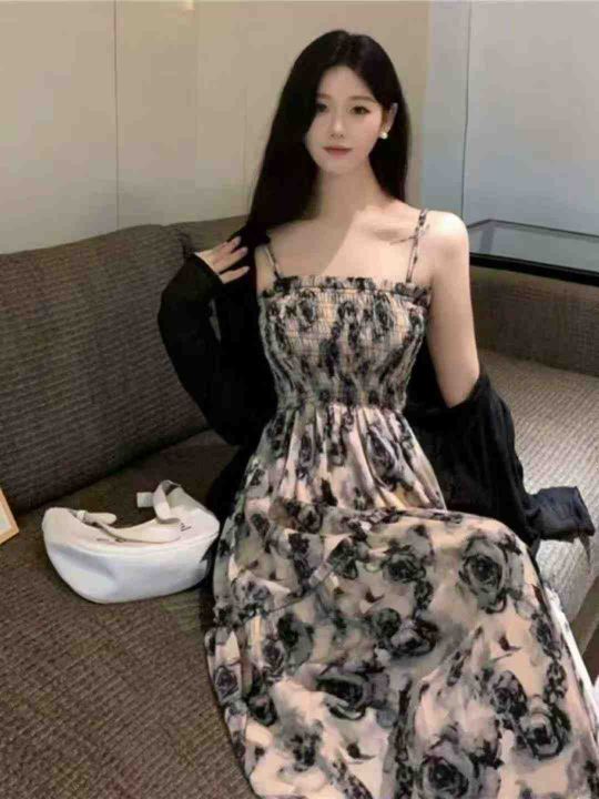 2025新款春法式高级感小个子长裙碎花吊带连衣裙女夏,整款2色,1.3.5码,34...