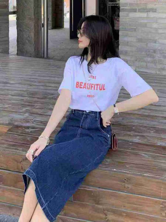 夏季新款高腰宽松梨形身材遮跨显瘦开叉a字包牛仔半身长裙,独立包装带吊牌...