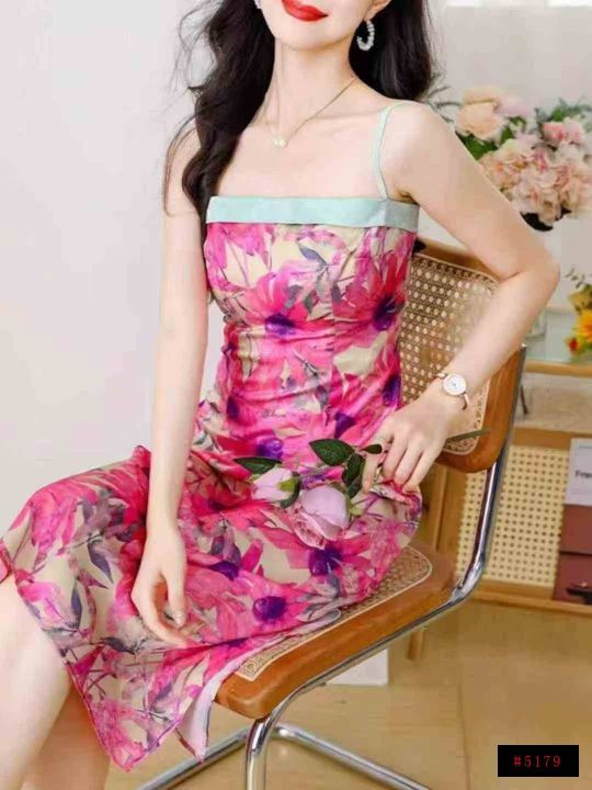 法式复古碎花拼接吊带连衣裙女士夏季新款气质修身高端包臀长裙477件,独立...