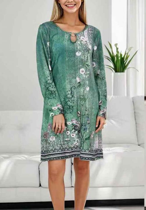 4.9清工厂回收413件外贸爆款长袖印花圆环金属连衣裙女,码数S-2XL。面料柔...
