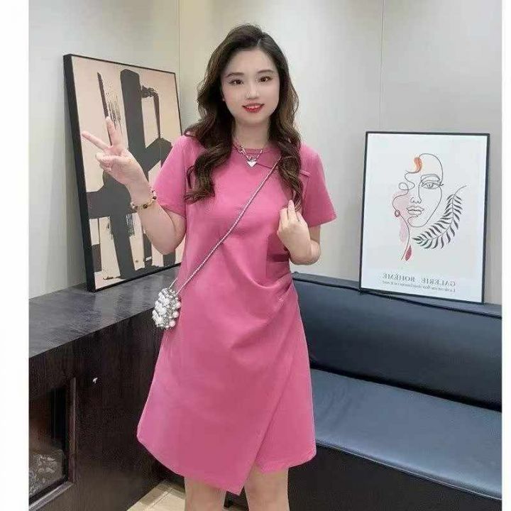 大码弹力设计感绑带T恤裙女夏季法式气质通勤显瘦小众收腰开叉连衣裙5000件...