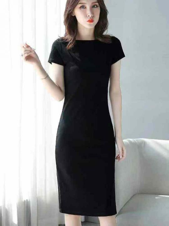 黑色显瘦连衣裙女长款修身气质包臀裙子,均码,水袋装,10件一绑,货品干净...