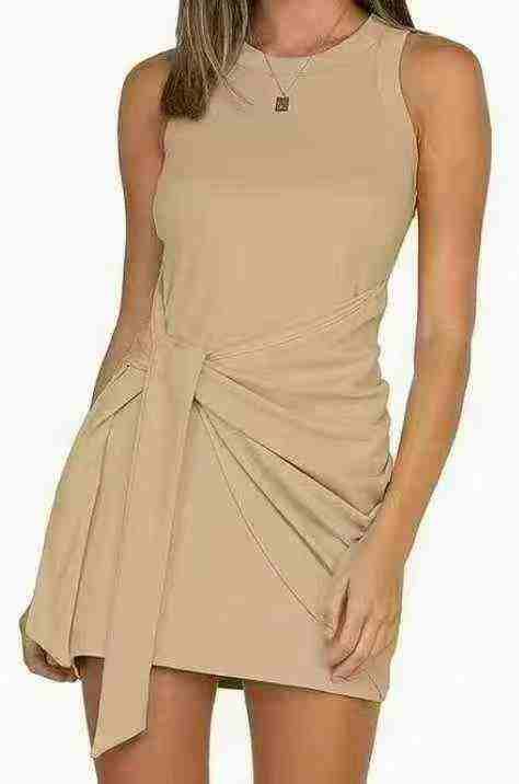欧美跨境新款V领无袖休闲收折女士连衣裙 ,数量 220 条,码数 S-2XL。 高弹...
