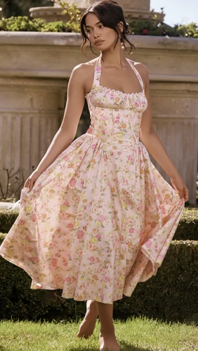 上新全清:6.8一件茶歇法式减龄洋气碎花吊带连衣裙,[爱心]85件左右,短款...