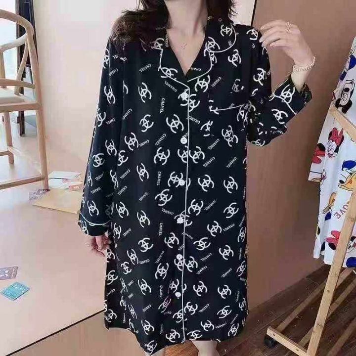 [月亮]:7.8清132件(不分货)[月亮]:时尚春夏中长款垂顺家居长袖睡裙[月...