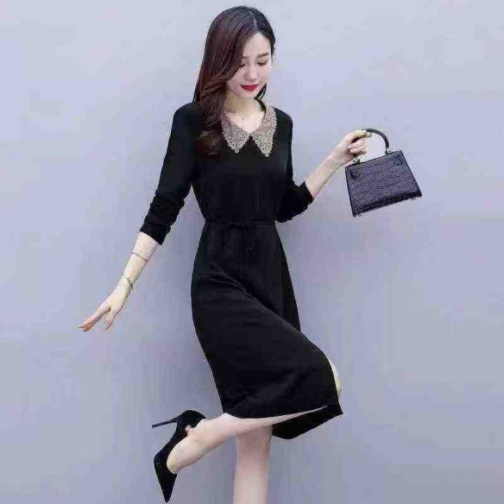 8.5元全清,名媛长款连衣裙洋气轻奢网红秋冬长裙百搭气质修身金丝绒黑色裙...