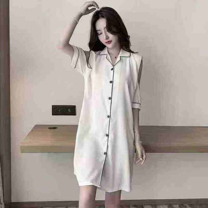 ① 网红冰丝性感露肩韩版宽松家居睡裙!独立包装,整款五色,有部分长袖款...