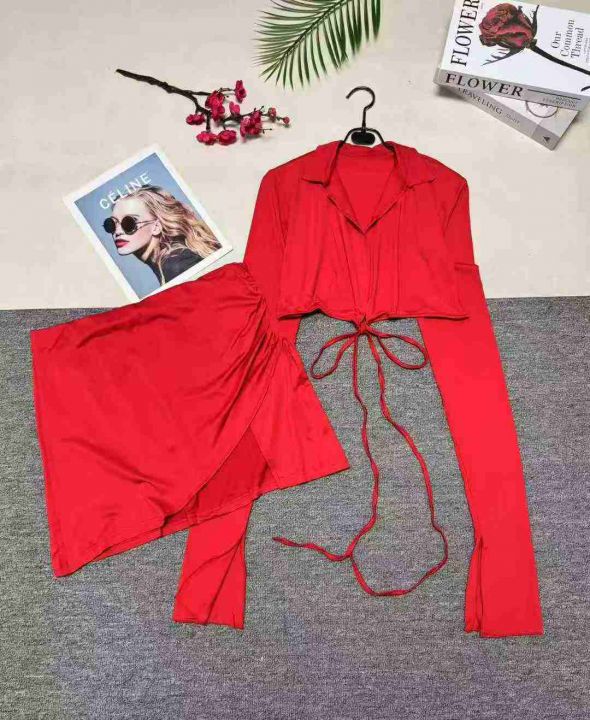 7.5清欧美辣妹露脐短上衣+开衩迷你小短裙套装,整款多色,数量:132套,码...