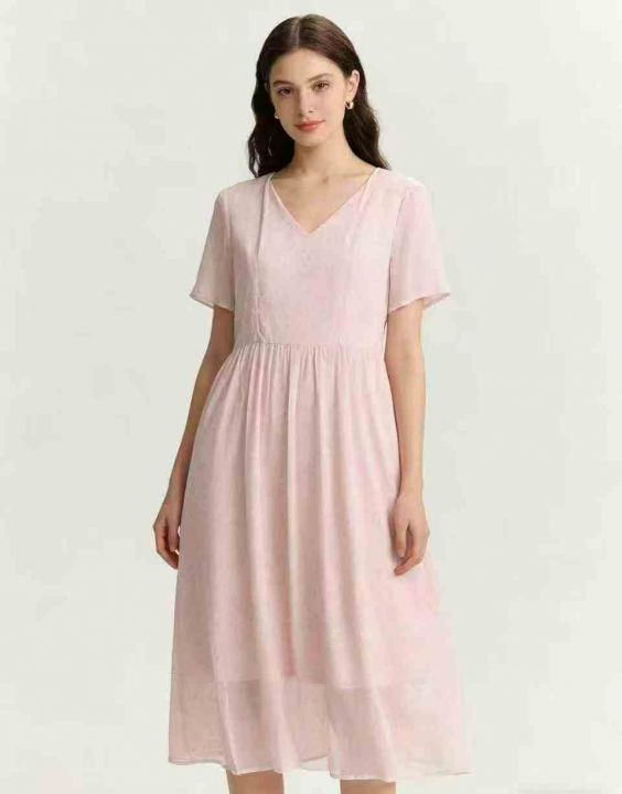 夏季茶歇法式轻熟温柔风v领粉色碎花裙超仙甜美气质收腰连衣裙女,图片款,...