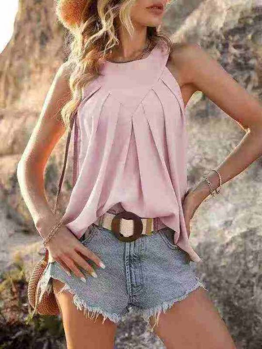欧美女装裙褶皱纯色吊带/亮面女士T恤 上衣,数量 215 件,码数 S -3XL。品 ...