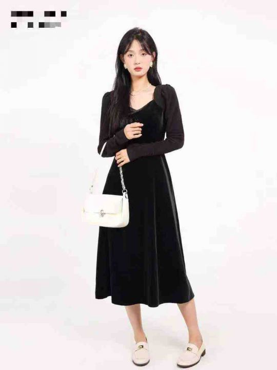 9.9清电商仓回收102件法式复古气质金丝绒淑女连衣裙,码数S-XL。面料垂感好...