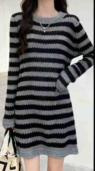 春秋新款韩系宽松百搭撞色条纹针织毛衣裙,独立包装,均码面料柔软舒适,12...
