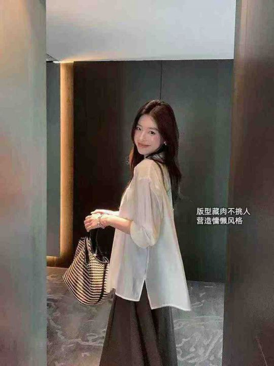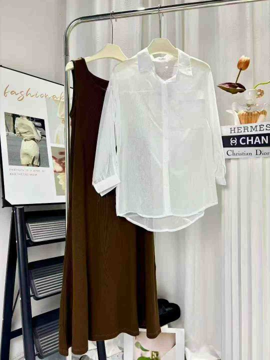 韩系慵懒风轻薄防晒衬衫宽松外套开衫和背心长款连衣裙套装两件套 独立包装 ...