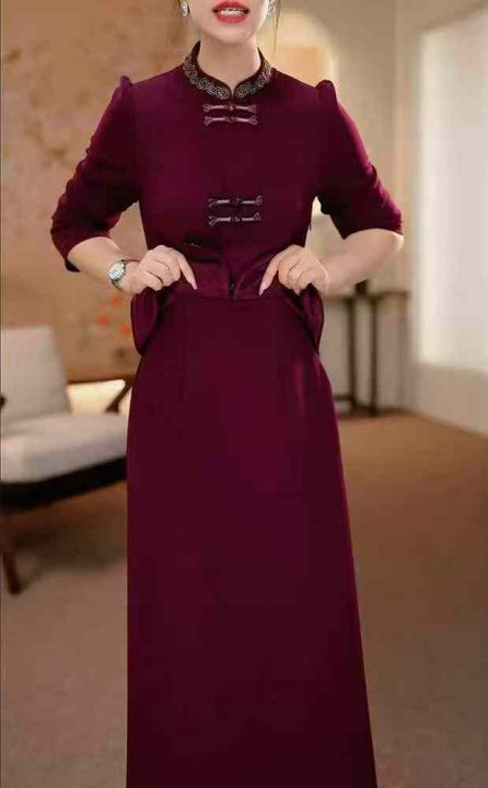 [月亮]:9.9清144件(不分货)[月亮]:春秋款中式国风气质晚宴礼服连衣裙[...