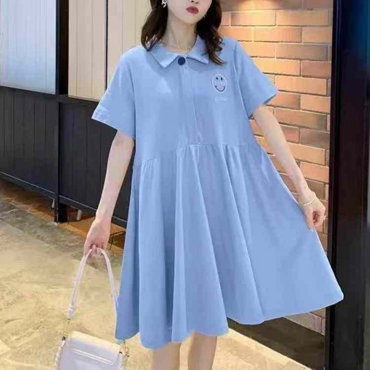 [月亮]:8.8秒杀清103件(不分货)[月亮]:孕妈胖妹宽松遮肚Polo棉质连衣裙...