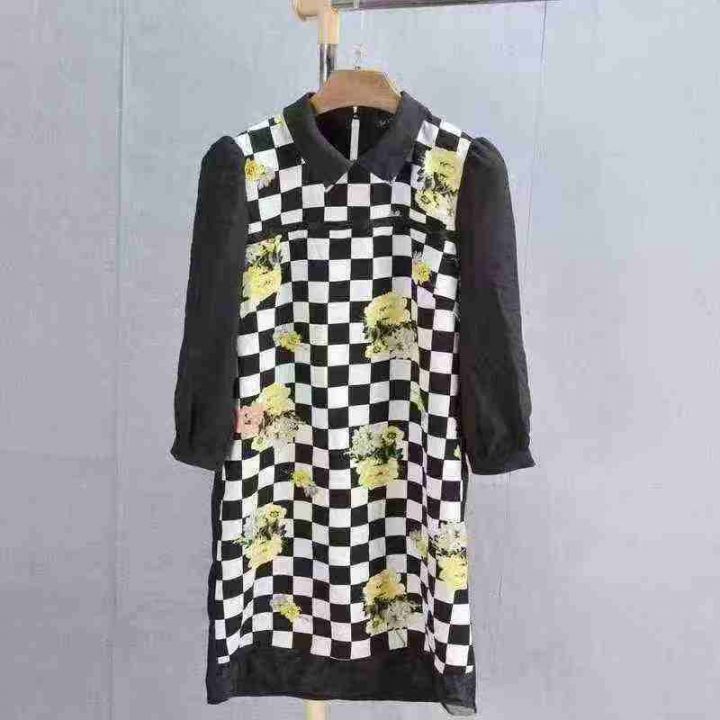 2.9元秒杀[發][發] 印花女装气质修身格子连衣裙,白色格子轻微染色,独立...