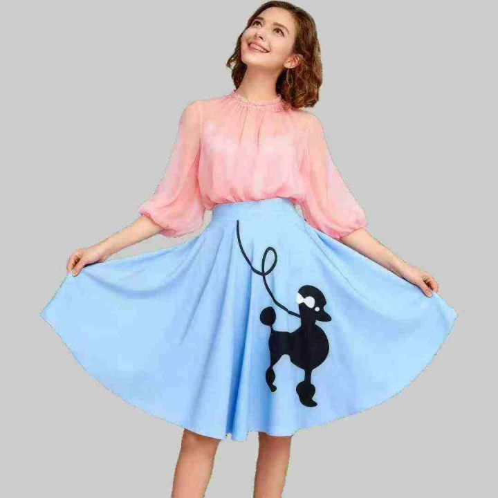 跨境女装亚马逊爆款欧美外贸印花夏季贵宾犬A字裙子复古女半身裙 ,整款五色...