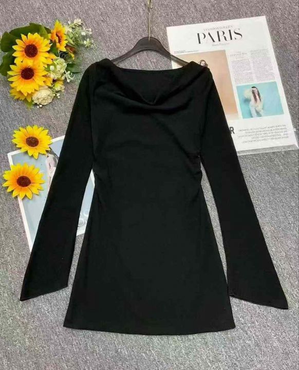秋冬新款女装百搭性感纯欲风弹力修身显瘦荡领德绒连衣裙,独立包装,码数1-...