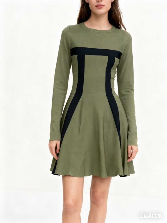 8.8元清高品质外贸针织连衣裙,单款军绿色,拼色设计师款,有弹力,数量430...