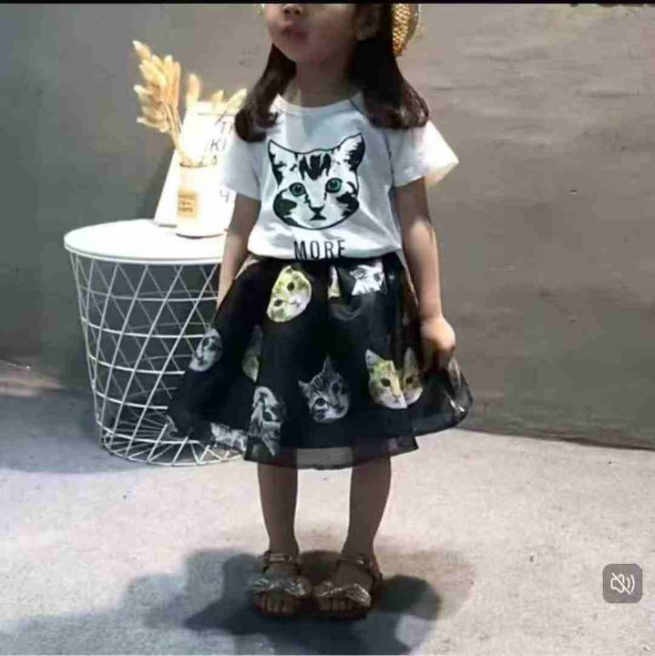 全清5.852件猫咪T恤+欧根纱连衣裙女童套装,码数110-140,独立包装带吊牌...
