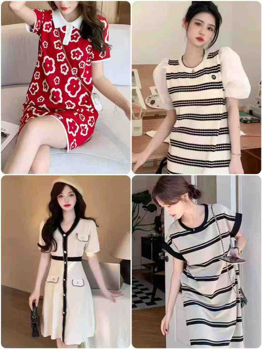 6.8清电商仓回收335条秋季新品设计款千金风条纹针织连衣裙系列,码数S-4XL...