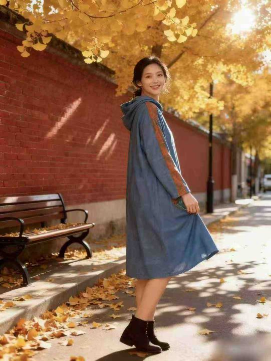 6.8清电商仓回收1003件仿牛仔复古小众慵懒风宽松胖MM连帽连衣裙,码数2-4-6...