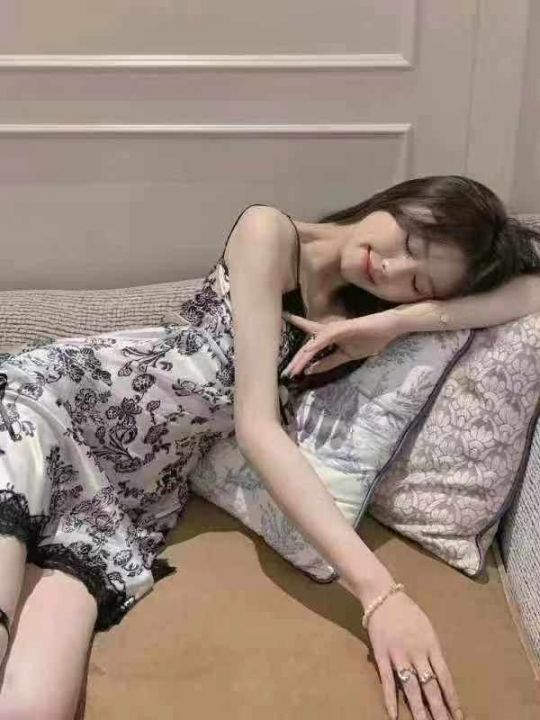 7.8清电商仓回收221件纯欲风碎花蕾丝边冰丝吊带睡裙女士睡衣,码数M-2XL。...