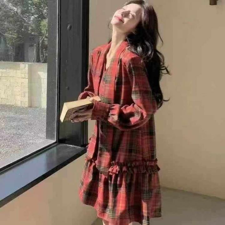 复古格子连衣裙121件9.9,翻领荷叶边,褶皱拼接,码标:160/84A(90-120斤...