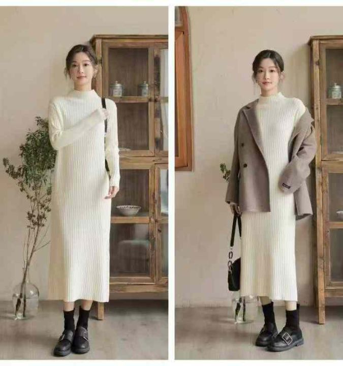 半高领内搭针织连衣裙女秋冬修身温柔气质开叉毛衣温柔风包臀裙子,独立包装...