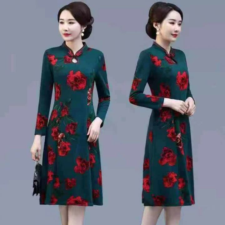 100左右秋装复古日常可穿高贵名媛气质中国风显瘦旗袍改良版长款连衣裙!尺...