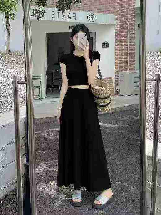 靓妹长半身裙套装,清12.8大长裙+辣妹上衣,码数S一xL,数量121套,针织坑...