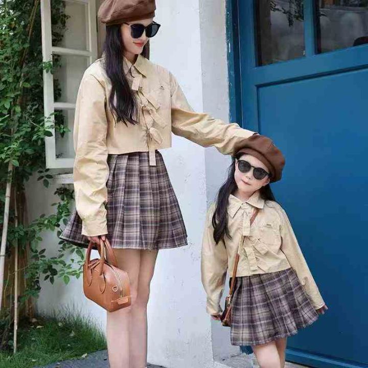 亏本清仓1900件学院风甜美亲子装高腰半身百褶裙,面料不易皱,品质非常好,...