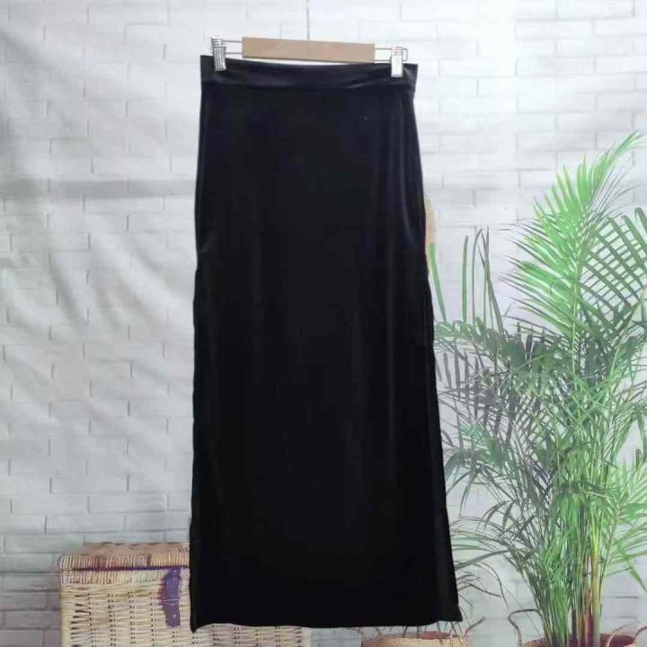 3.8元秒杀[玫瑰][玫瑰] 金丝绒黑色新款高腰两边开叉复古显瘦长款半身裙,...
