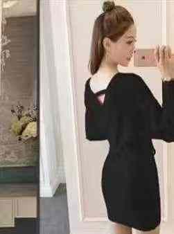 时尚性感女人味V领短袖编蝠袖连衣裙高腰绑带修身显瘦包臀针织毛衣裙,实物...