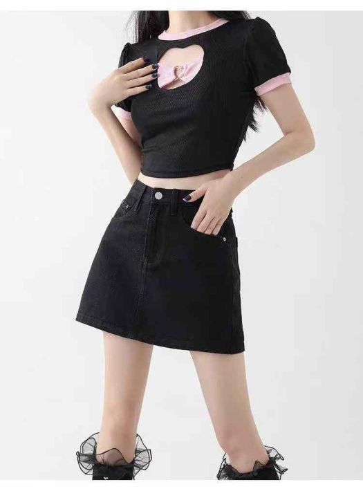 复古牛仔短裙☕️195条全清8.8元,码数S到XL,独立包装,新款显瘦黑色不规...