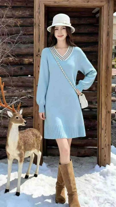 秋冬新款新净版简约加厚中长款包芯纱毛衣连衣裙,独立包装,均码面料软糯厚...