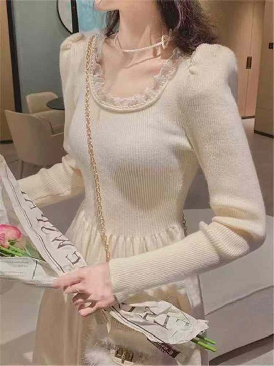 秋冬新款法式复古高端名媛优雅心机网纱针织毛衣连衣裙,独立包装,均码面料...
