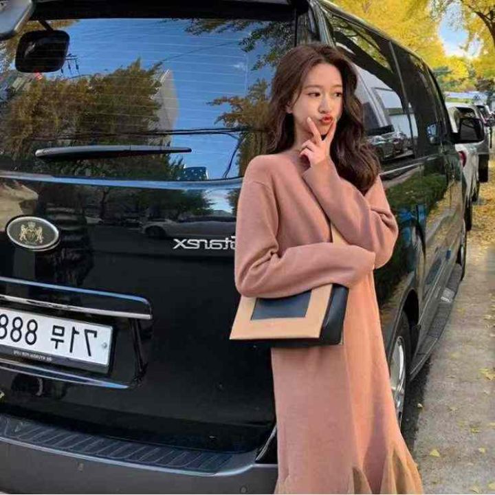 秋冬新款温柔风女神范减龄洋气设计感小众中长款针织连衣裙,独立包装,均码...