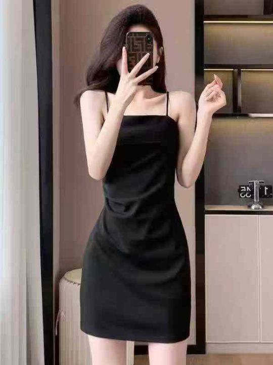 6.8清电商仓回收125件气质收腰简约经典小黑裙吊带连衣裙,码数S-L。肩带可...