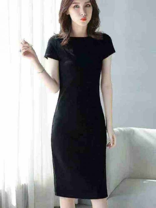 黑色显瘦连衣裙女长款修身气质包臀裙子,均码,水袋装,10件一绑,货品干净...