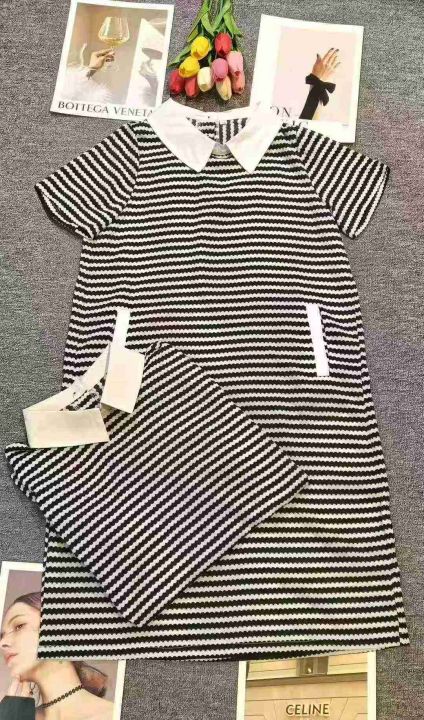 上新全清:10.8一件时尚百搭气质小翻领条纹连衣裙,[爱心]55件左右,杏色翻...