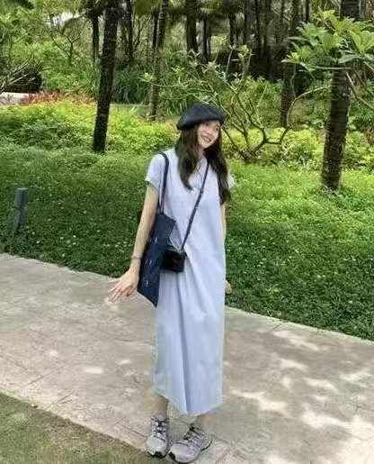 1500多件夏季宽松中长款光版T恤连衣裙,尺码XS-4XL ,面料软糯四面弹,后领...