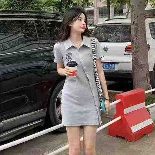 7.8清电商仓回收425件靓妹韩系甜美Polo翻领纽扣连衣裙女,码数s-3xl。版型...