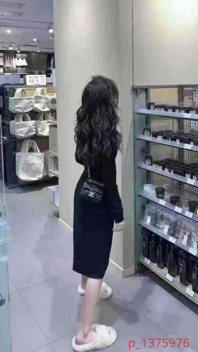 秋冬新款法式弹力修身气质黑色包芯纱针织毛衣连衣裙,独立包装,均码面料软...