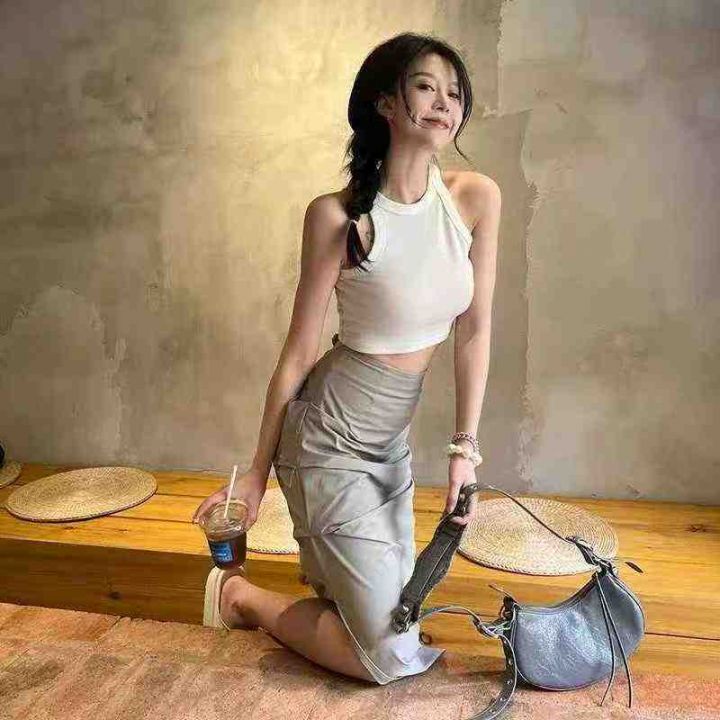 褶皱半身裙女夏季中长裙修身显瘦速干开叉半裙欧美ins辣妹工装裙,193件,码...