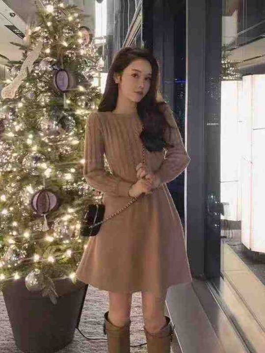 秋冬新款配大衣中长款收腰显瘦麻花加厚毛衣连衣裙,独立包装,码数S--XL码...